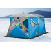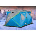 Внешний вид палатки выполнен в синем цвете с ярко-зелеными вставками-светоотражателями. Установка и демонтаж занимают менее двух минут благодаря уникальной «зонтичной» конструкции. Удлиненная форма (прямоугольная) позволяет разместить три-четыре раскладушки вдоль стен или 8 человек в сидячем положении. Для печи и снаряжения останется достаточно пространства.